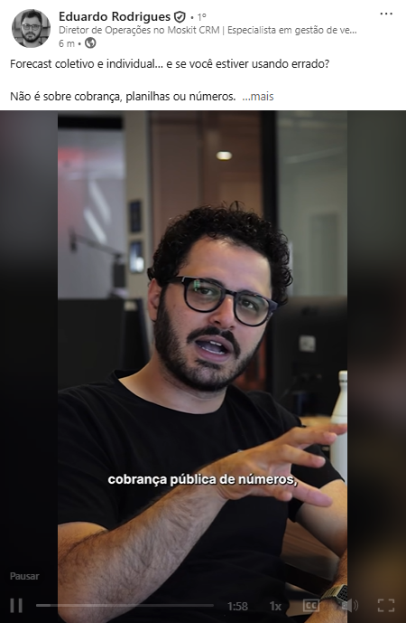 Eduardo Rodrigues, diretor de operações e sócio do Moskit, publica no LinkedIn e no Instagram sobre gestão, vendas, mercado e CRM. Não como porta-voz da empresa, mas como alguém que vive o dia a dia do setor e tem opinião sobre ele.